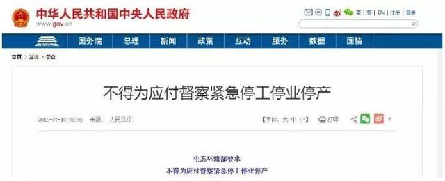 環(huán)境部發(fā)文件明確,被督察?。ㄊ校?、集團(tuán)公司不得為應(yīng)付督察而不分青紅皂白地采取緊急停工停業(yè)停產(chǎn)等簡單粗暴行為,以及“一律關(guān)?!薄跋韧T僬f”等敷衍應(yīng)對做法。